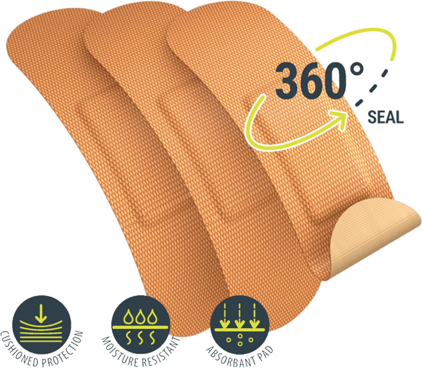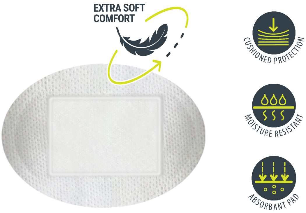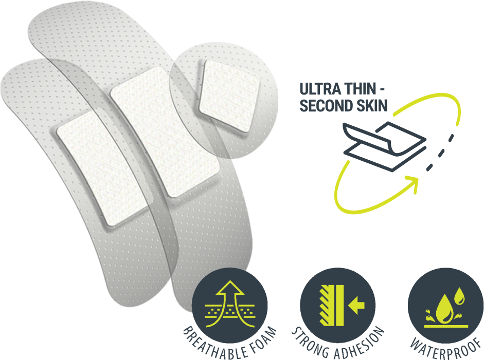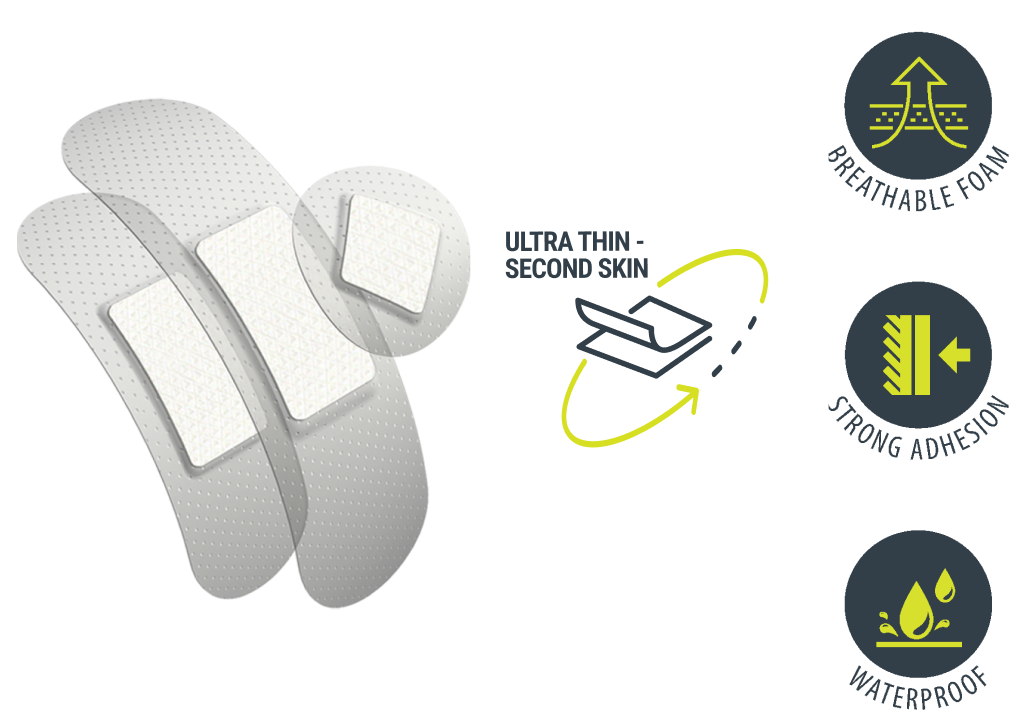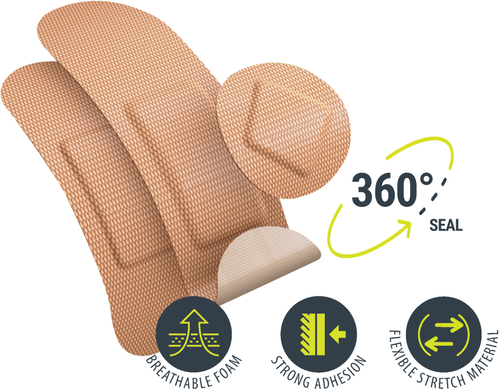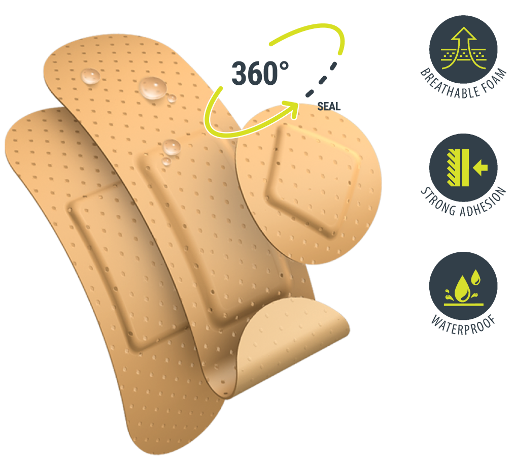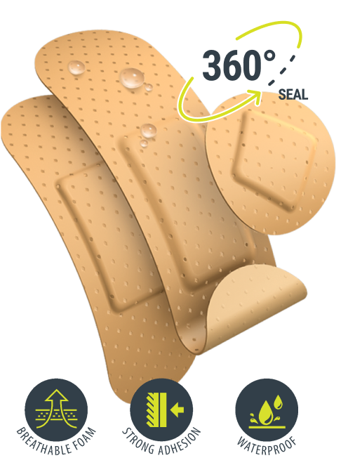 Our plaster range includes a 360-degree seal that protects your wound from infection or contact with water.