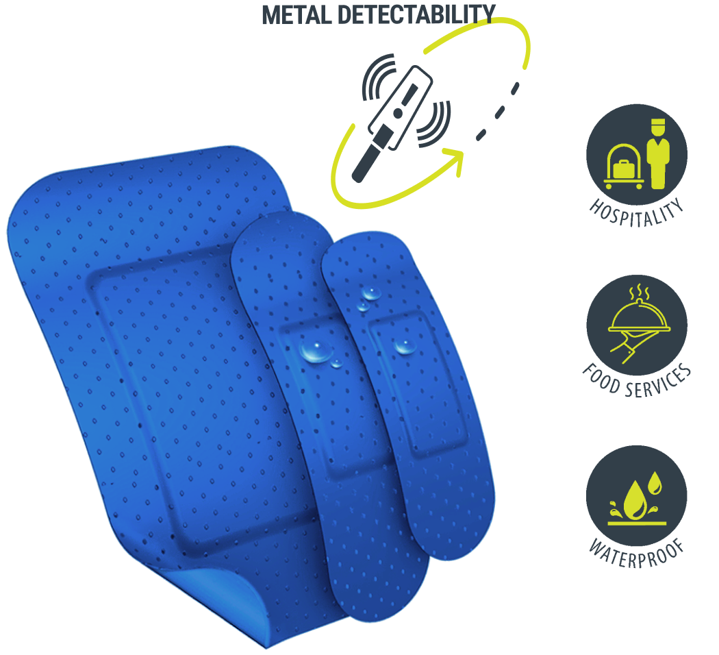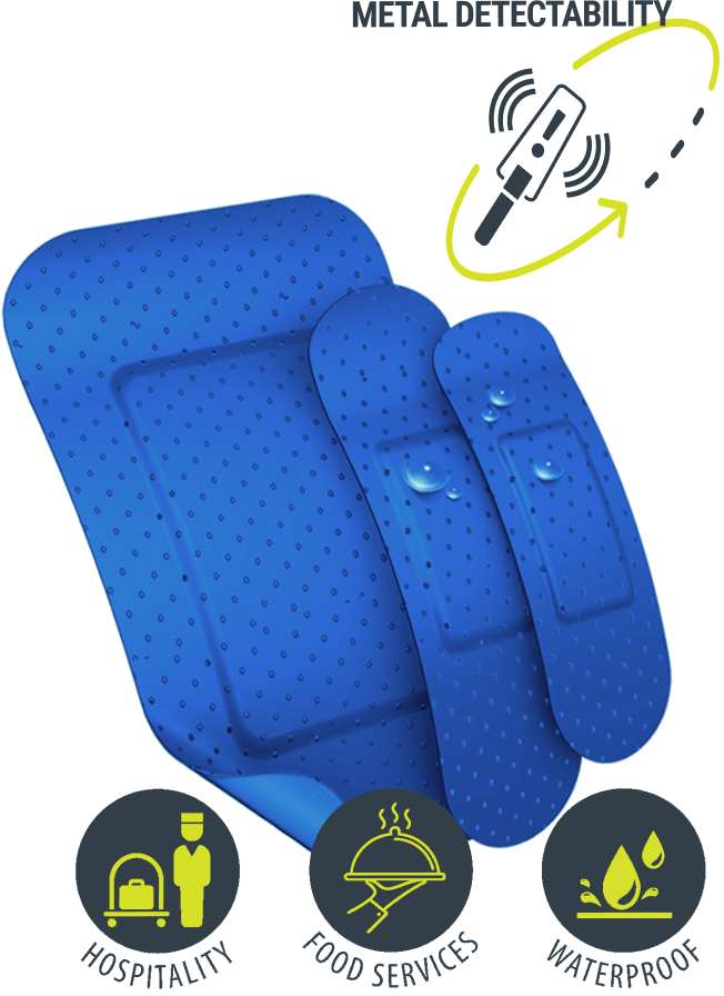 Our blue plasters are metal detectable and easy to spot in a hospitality or food service environment, perfect for minor cuts or scrapes in the kitchen. This not only ensures a hygienic environment but also an easy way to ensure a plaster that may have fallen off won’t be concealed in a dish. Our range of waterproof catering and food service plasters are essential items that should be included in your hospitality first aid kit.